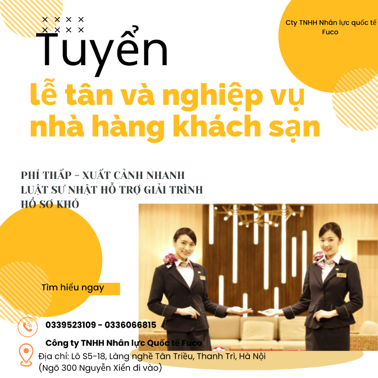 Ứng viên lưu ý: Sàn xuất khẩu lao động .com là nền tảng kết nối thông tin, sàn không có chức năng đưa người lao động đi làm việc tại nước ngoài. Các tin tuyển dụng do nhà tuyển dụng trực tiếp đăng tải và chỉ có giá trị tham khảo, ứng viên cần tìm hiểu kỹ thông tin trước khi đăng ký.