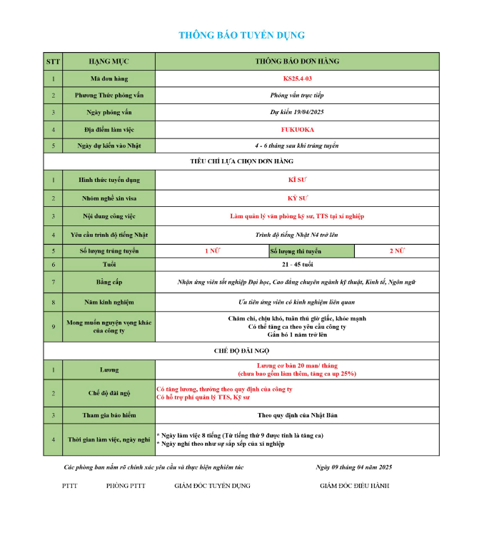- Nhận ứng viên tốt nghiệp CĐ, ĐH chuyên ngành kỹ thuật, Kinh tế, Ngôn ngữ