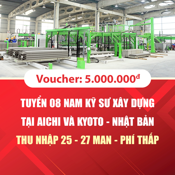 Tuyển 8 Nam Kỹ sư sản xuất bê tông đúc sẵn tại Aichi và Kyoto, Nhật Bản