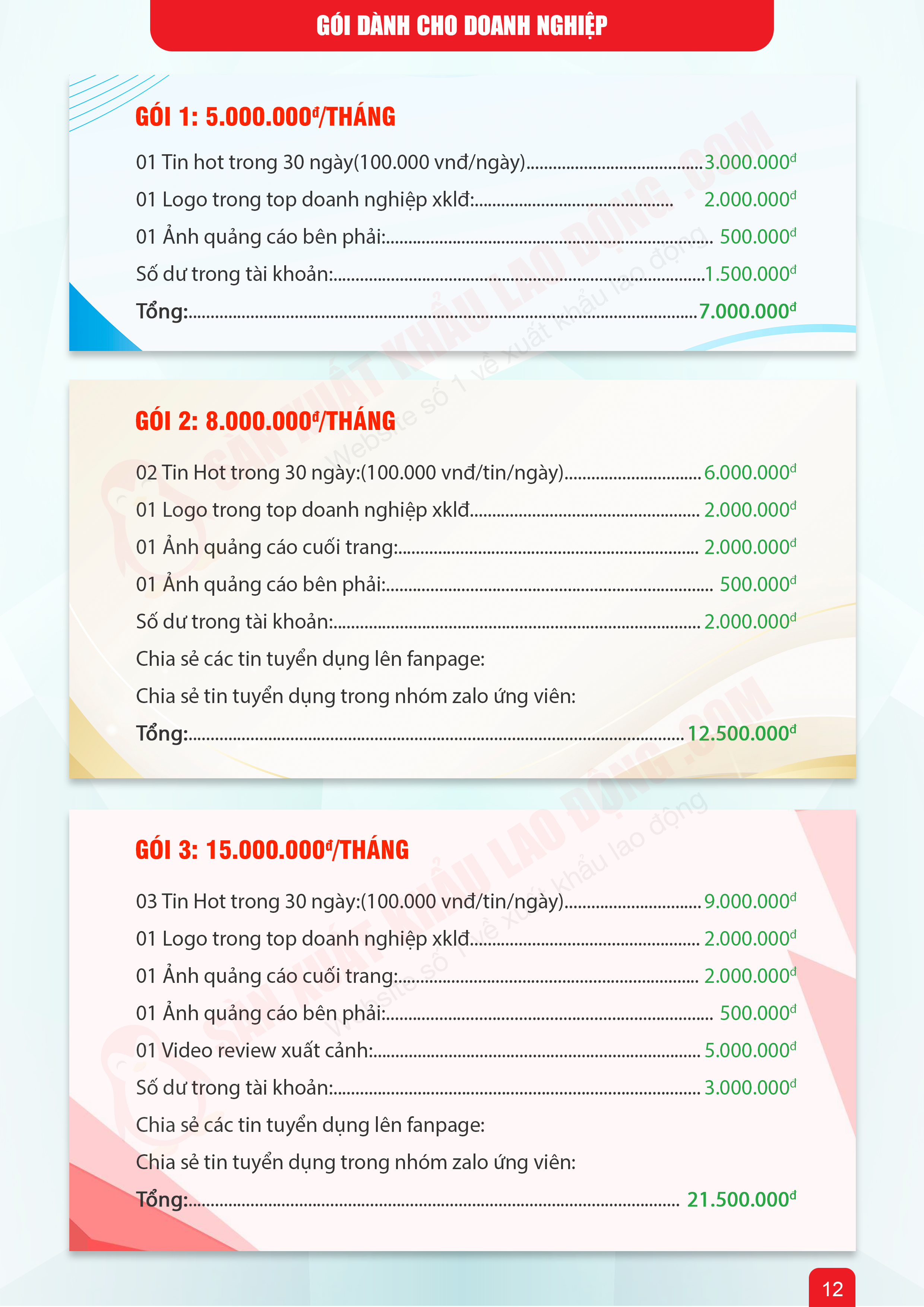 • Chương trình ưu đãi dành cho nhà tuyển dụng.
