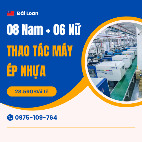 Cần 08 Nam + 06 Nữ vận hành máy ép nhựa sx bình lọc nước tại Đài Loan.