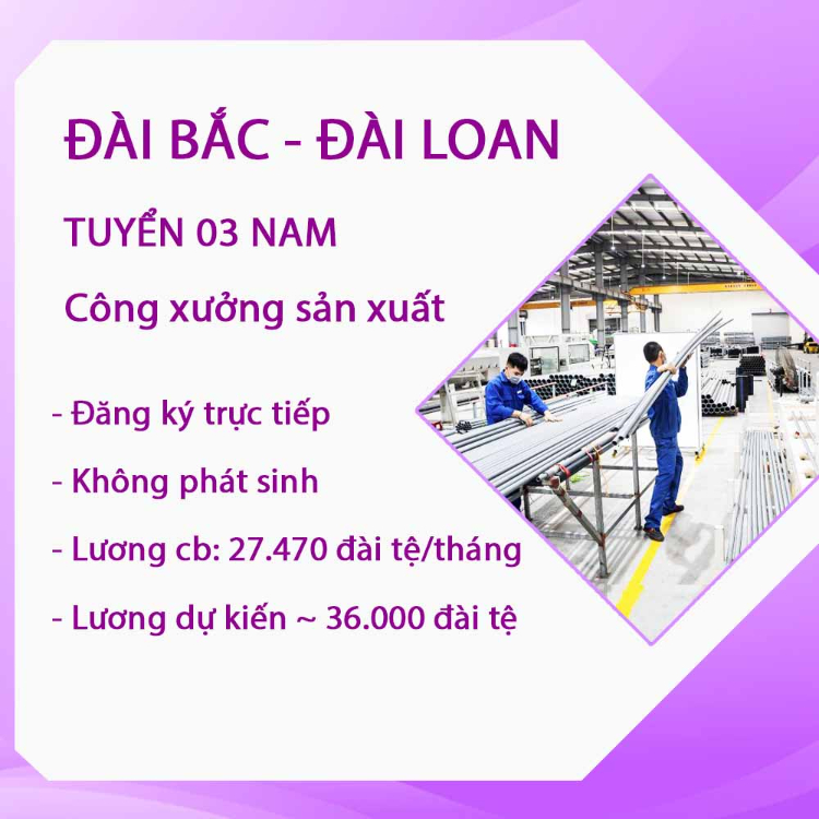 [Đơn siêu tốt] Tăng ca 3 - 4 h/ngày tuyển 40 nam nữ linh kiện điện tử Đài Loan.