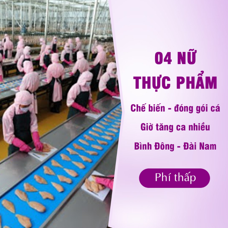 Đơn tuyển 04 Nữ Chế biến thực phẩm tại Bình Đông, Đài Loan