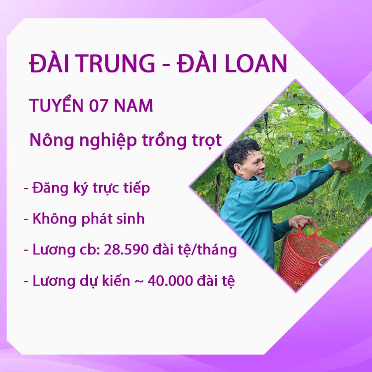 Tuyển 25 Nam Nữ làm nông nghiệp trồng rau tại Đào Viên, Đài Loan.