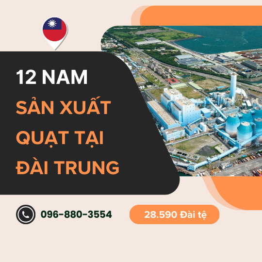 Tuyển 12 Nam làm việc trong nhà máy sản xuất quạt tại Đại Nhã, Đài Trung.