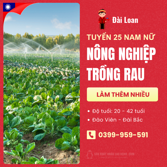 Tuyển 25 Nam Nữ nông nghiệp trồng rau tại Đào Viên, Đài Loan.