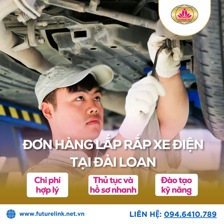 Công ty TNHH Quốc Tế Futurelink Star xin trân trọng thông báo tuyển dụng đơn hàng lắp ráp xe điện tại Đài Loan. Đơn vị tiếp nhận là Công ty Đại Vũ, với địa điểm làm việc tại Đại Giáp, Đài Trung, Đài Loan. Công việc chính của ứng viên là lắp ráp xe điện phụ trợ và thực hiện các công việc theo sắp xếp của nhà máy.