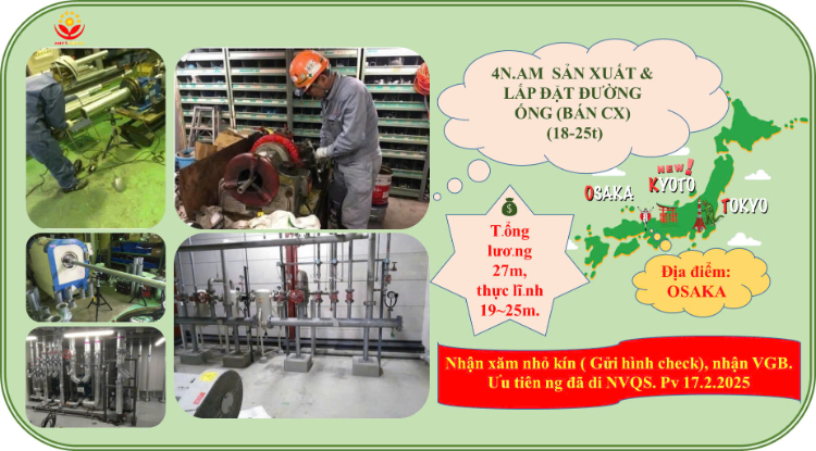 Abey's Tuyển 04 Nam Bán công xưởng tại Osaka, Nhật Bản - Thu nhập tốt, có bảng lương
