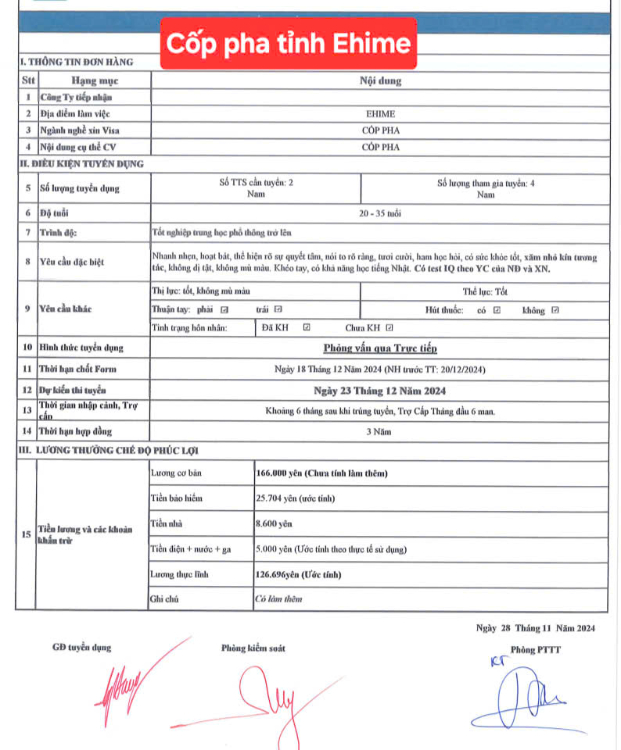 Ứng viên lưu ý: Sàn xuất khẩu lao động .com là nền tảng kết nối thông tin, sàn không có chức năng đưa người lao động đi làm việc tại nước ngoài. Các tin tuyển dụng do nhà tuyển dụng trực tiếp đăng tải và chỉ có giá trị tham khảo, ứng viên cần tìm hiểu kỹ thông tin trước khi đăng ký.