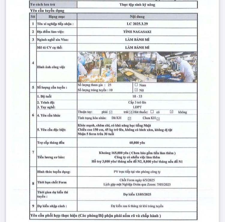 Ứng viên lưu ý: Sàn xuất khẩu lao động .com là nền tảng kết nối thông tin, sàn không có chức năng đưa người lao động đi làm việc tại nước ngoài. Các tin tuyển dụng do nhà tuyển dụng trực tiếp đăng tải và chỉ có giá trị tham khảo, ứng viên cần tìm hiểu kỹ thông tin trước khi đăng ký.