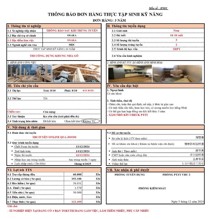Ứng viên lưu ý: Sàn xuất khẩu lao động .com là nền tảng kết nối thông tin, sàn không có chức năng đưa người lao động đi làm việc tại nước ngoài. Các tin tuyển dụng do nhà tuyển dụng trực tiếp đăng tải và chỉ có giá trị tham khảo, ứng viên cần tìm hiểu kỹ thông tin trước khi đăng ký.