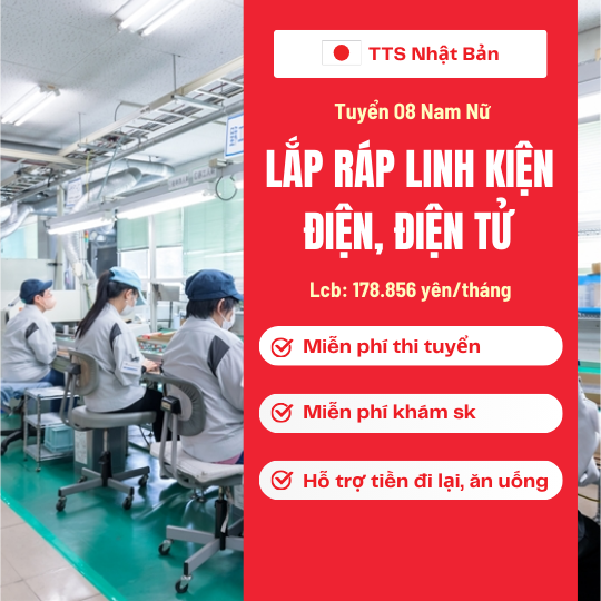 Tuyển 08 Nam Nữ lắp ráp linh kiện điện, điện tử tại Shiga, Nhật Bản [Phí thấp].