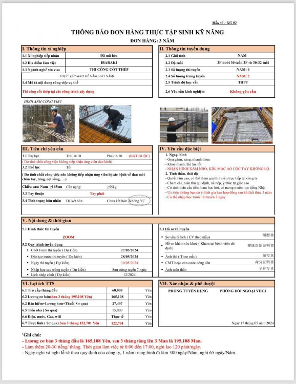 Ứng viên lưu ý: Sàn xuất khẩu lao động .com là nền tảng kết nối thông tin, sàn không có chức năng đưa người lao động đi làm việc tại nước ngoài. Các tin tuyển dụng do nhà tuyển dụng trực tiếp đăng tải và chỉ có giá trị tham khảo, ứng viên cần tìm hiểu kỹ thông tin trước khi đăng ký. Để được tư vấn, ứng viên có thể bấm nút "Tư vấn giúp tôi" hoặc liên hệ trực tiếp với nhà tuyển dụng.