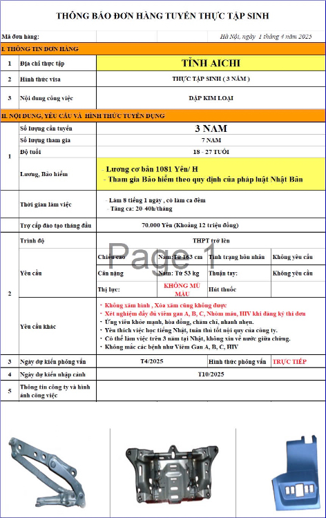 Tuyển dụng TTS 3 năm - Dập Kim loại Aichi