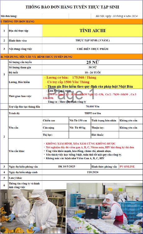 Ứng viên lưu ý: Sàn xuất khẩu lao động .com là nền tảng kết nối thông tin, sàn không có chức năng đưa người lao động đi làm việc tại nước ngoài. Các tin tuyển dụng do nhà tuyển dụng trực tiếp đăng tải và chỉ có giá trị tham khảo, ứng viên cần tìm hiểu kỹ thông tin trước khi đăng ký.
