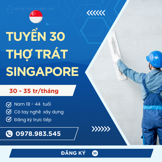 Tuyển 30 thợ trát tại Singapore - Lương 6$ sing/giờ.