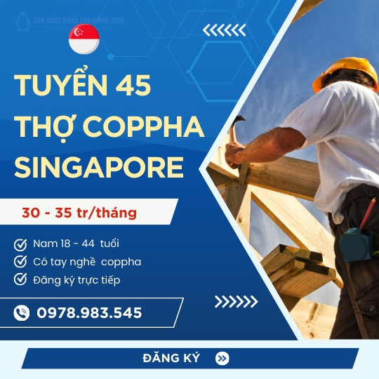 Tuyển 45 thợ coppha tại Singapore - Lương 6$ sing/giờ.